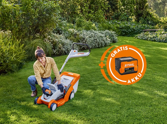 Beim Kauf eines STIHL Rasenmähers RMA 235, RMA 239 oder RMA 239 C im Set mit Akku AK 20 und Ladegerät AL 101 erhalten Sie einen weiteren Akku AK 20 gratis.